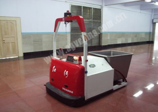 牽引式AGV就像一個自動拖拉機(jī)的車頭,它后面可以掛車斗。AGV對車斗進(jìn)行往復(fù)的運(yùn)輸。
