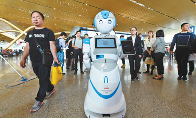 6月28日是昆明長水國際機(jī)場(chǎng)轉(zhuǎn)場(chǎng)運(yùn)行5周年紀(jì)念日。一款會(huì)移動(dòng)、能唱歌、會(huì)說話的智能客服機(jī)器人亮相長水機(jī)場(chǎng),可以為旅客提供“值機(jī)”“安檢”“登機(jī)”等乘機(jī)相關(guān)問題引導(dǎo)服務(wù)。